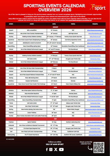 If you want to submit an event for inclusion within the calendar, please complete the form 'Submit a sporting event' in the tab on the left.